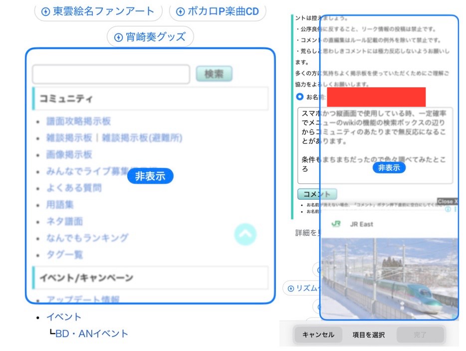 一部wiki内で押せない事象が発生したのでその補足のための画像です